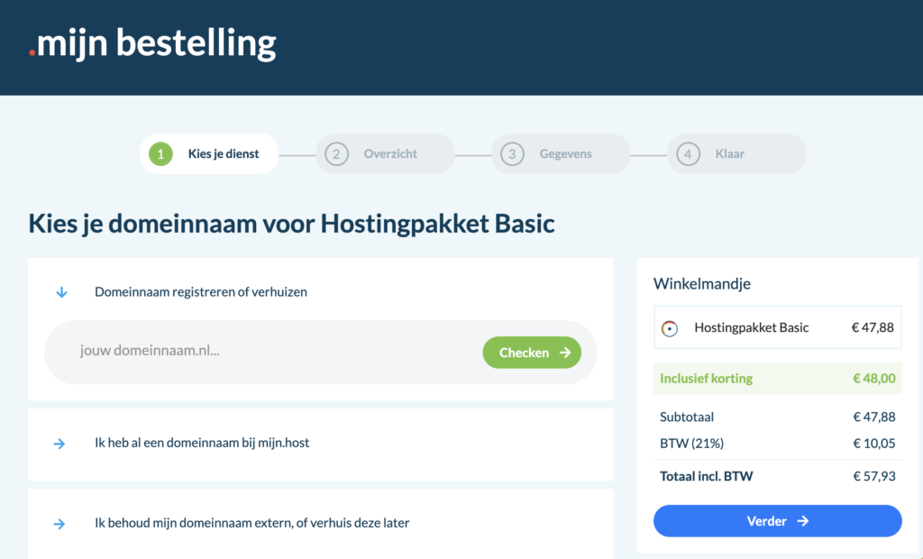 Ga naar de mijn.host hosting pakketten pagina en kies hier voor het .basic pakket.