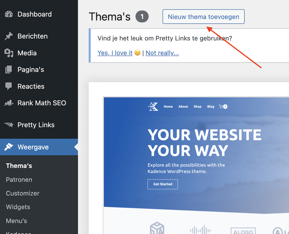 Dan klik je op de Nieuw thema toevoegen knop linksboven.