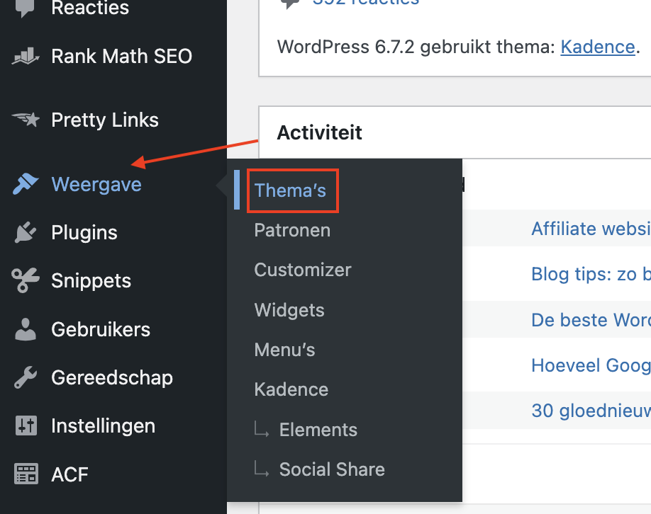 Je kunt je thema veranderen door naar je WordPress dashboard te gaan en te klikken op Weergave >> thema’s.