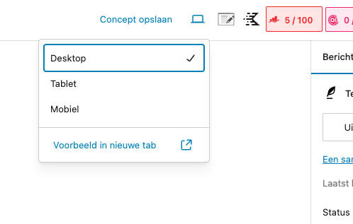 Je kunt voorafgaand aan publicatie je blog nog even bekijken door op de Voorbeeld in nieuwe tab knop te drukken.
