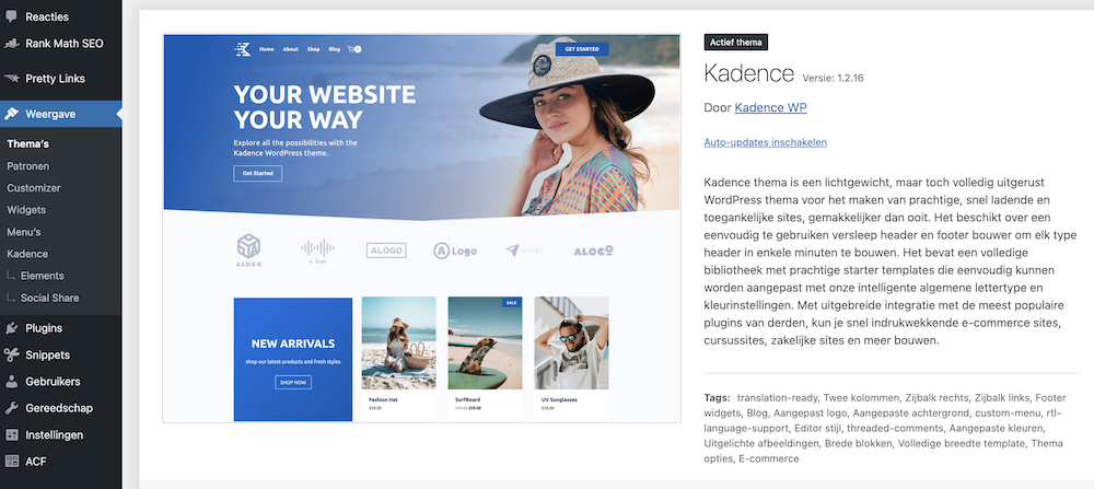 Ik zal je in elk geval vertellen welk thema ikzelf gebruik voor al mijn blogs. Dit is Kadence. Kadence is een door WordPress gebruikers hoog gewaardeerd, prachtig ontworpen thema. Kadence behoort tot de categorie premium thema’s, maar het heeft ook een gratis versie.